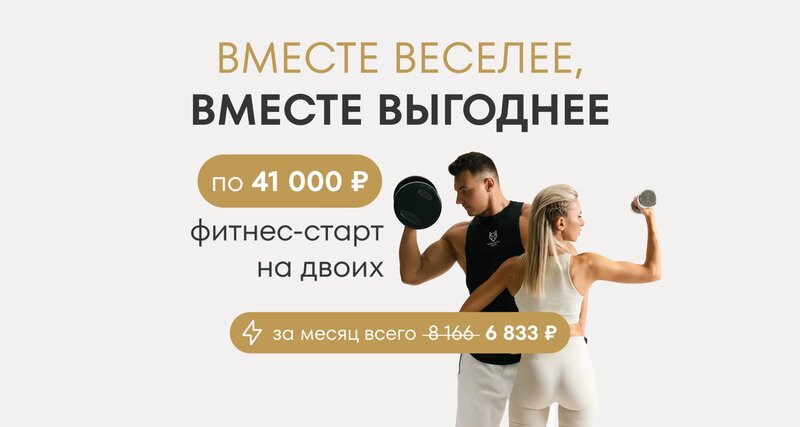 Дарим выгоду на Фитнес для двоих! Две карты по спеццене - каждая. Вы получаете 5 месяцев фитнеса в комфорте + 1 месяц заморозки в подарок....
