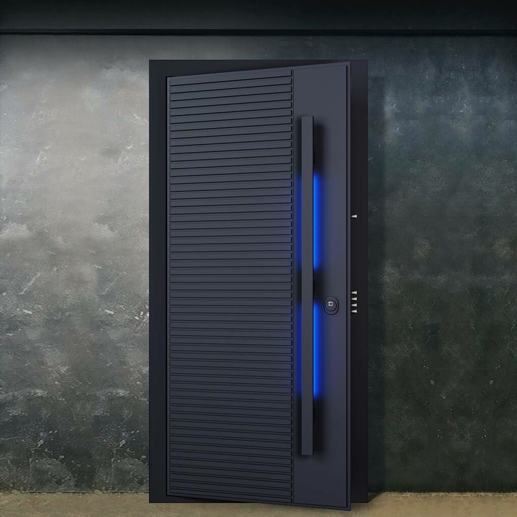 Дверь с трехуровневой фрезеровкой Elemento и дизайнерской ручкой Largo - образец высокотехнологичного дизайна. Удобная ручка-скоба имитирует элементы фрезеровки панели, а встроенная в ручку-скобу подсветка подчеркивает общую концепцию стиля.