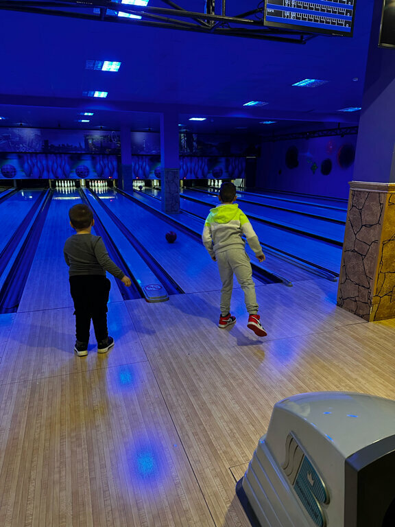 Сегодня приехали на др друзей, впервые в этом месте.В боулинг играл впервые- поэтому тут нечего сказать- поиграл норм))) Дошло дело до еды- не рекомендую от слова совсем!!! Пицца на супертонком тесте с 2 мя кусками колбасы на все 33 см))) Лимонад- нет слов.. Чай - такое впечатление, что высыпали содержимое пакетика в чайник при том не нам первым!!! Официант при заказе пива- просто решил новую бутылку налить в свободные стаканы!!! Я в шоке от обслуживания