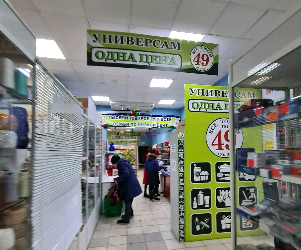 Считаю лучшим магазинчиком для себя ( я одинокий пенсионер - инвалид ) ! Множество продуктов и товаров по 49 раб/ единица . Часто беру консервы : ,, Мясо птицы ,, , ,, Тушенку ,, . Конечно с мехобвалкой, но мяса не мало . Так же большой выбор рыбных консервов , овощных. Радуют бульоны сухие : мясной , грибной , ... Сгущёнка . Крупы , чай , сладости ( прекрасная классическая халва ) . Есть посуда , разные коврики , носки ( большой выбор ) . Короче - советую посетить !