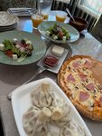 Еда в этом кафе не вкусная, хинкали как будто не свежие, в пицце сыра нет практически, одно тесто. Морс клюквенный принесли испорченный... Официант одна, она и на кассе работает и блюда разносит. Данное кафе не рекомендую.