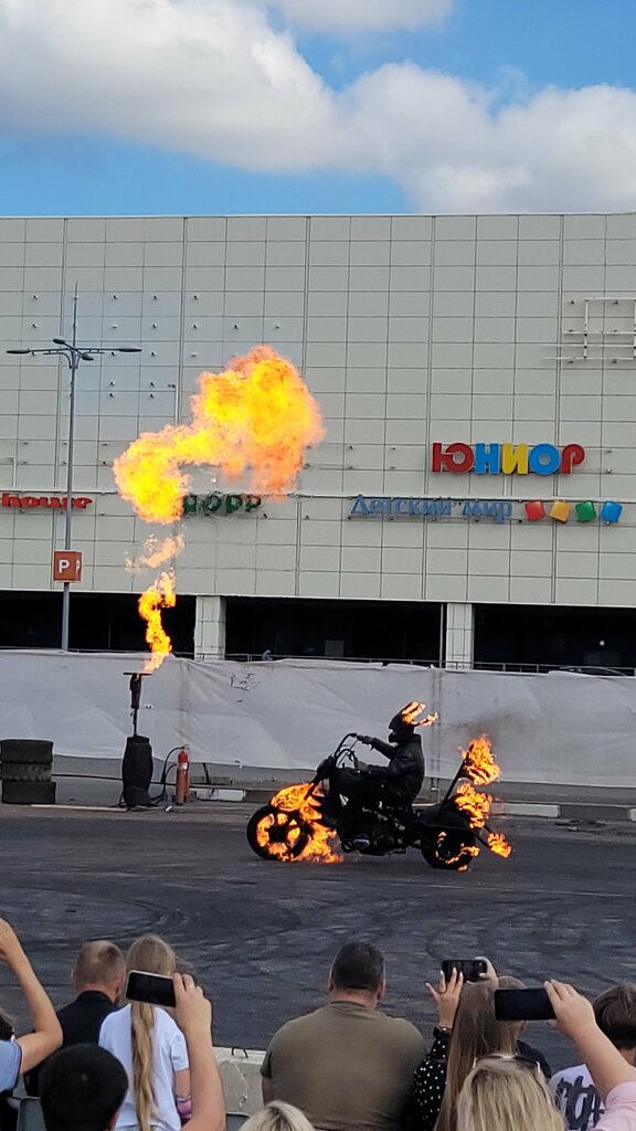 Ребята, каскадеры молодцы. Но сама организация отвратительная. Звук плохой, трибуны для зрителей сломаные , без навеса. То есть если прошел дождь, то ты сидишь в луже. Самих трюков мало, между трюками ведутся патриотическая пропаганда. Фраза мы русские , звучала через раз и через час всего этого действа уже от речей стало тошнить. Все трюки проходили по песню Шамана -я русский , соответственно. Когда людей катали в дрифтующей бмв , тут же рядом стояла толпа желающих прокатиться детей. Достаточно близко и опасно. Я понимаю что за рулем сидит профессионал, но все-таки это техника, которая может отказать и улететь в толпу детей