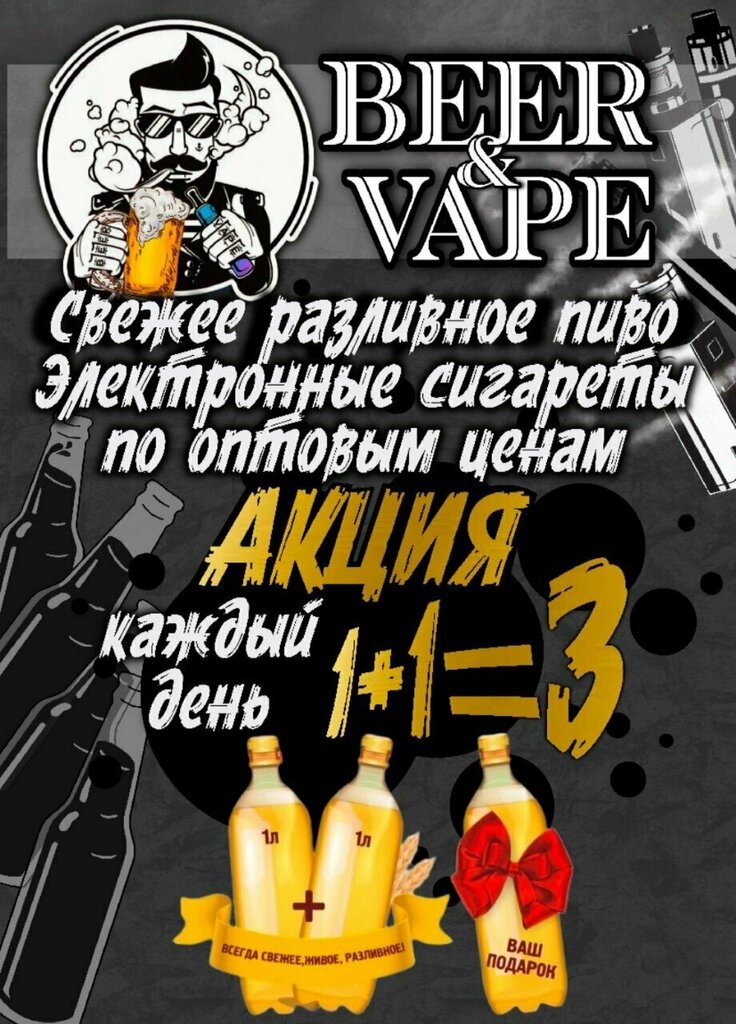 Каждый день свежее разливное по акции 1+1=3 Оптовые цены на VAPE под заказ.