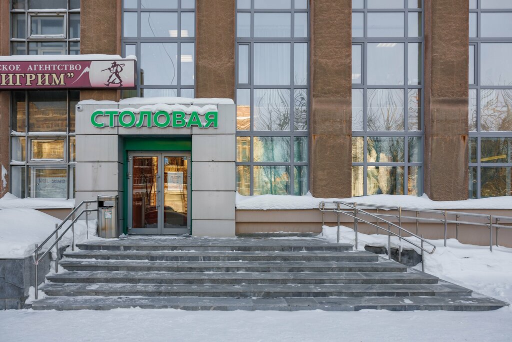 Отличная столовая. Самообслуживание. Ассортимент блюд, салатов, супов, гарниров, вторых блюд, выпечки, очень разнообразный. Порции (супы и гарниры) можно взять как целые, так и 1/2. Цены очень приятные. Полноценный обед: салат, первое, второе и компот с плюшкой выйдет примерно 400₽+/-. Всегда чисто. Обслуживание быстро. Обедать ходят сотрудники всех близлежащих организаций, но очередь двигается достаточно быстро.