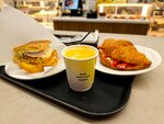 обнаружила данное место с домом, хотела выпить кофе и позавтракать. гриль сэндвич просто огонь, сыр тянется а булочка хрустящая. кофе не дурный. так же взяла эклер с малиной - не очень понравился, но планирую пробовать и другие десерты :) персонал приятный, предлагает сориентировать по меню. большой выбор напитком! но хотела бы обратить внимание на посуду, если только это не задумка, но трещины немного смущают. интерьер тоже приятный, очень ✨aesthetic ✨