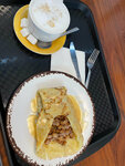Вкусный блинчик с яблоком, утром приятный бонус к такой покупке - кофе. Мне понравилось, уютно, персонал вежливый, музыка приятная играет. Хорошее место.
