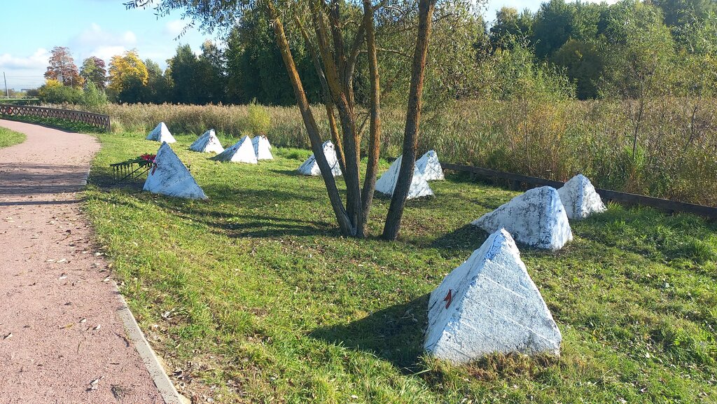 Это просто табличка на камне и противотанковые надолбы. Но, несмотря на предельную скромность памятника - эмоции всё равно вызывает.