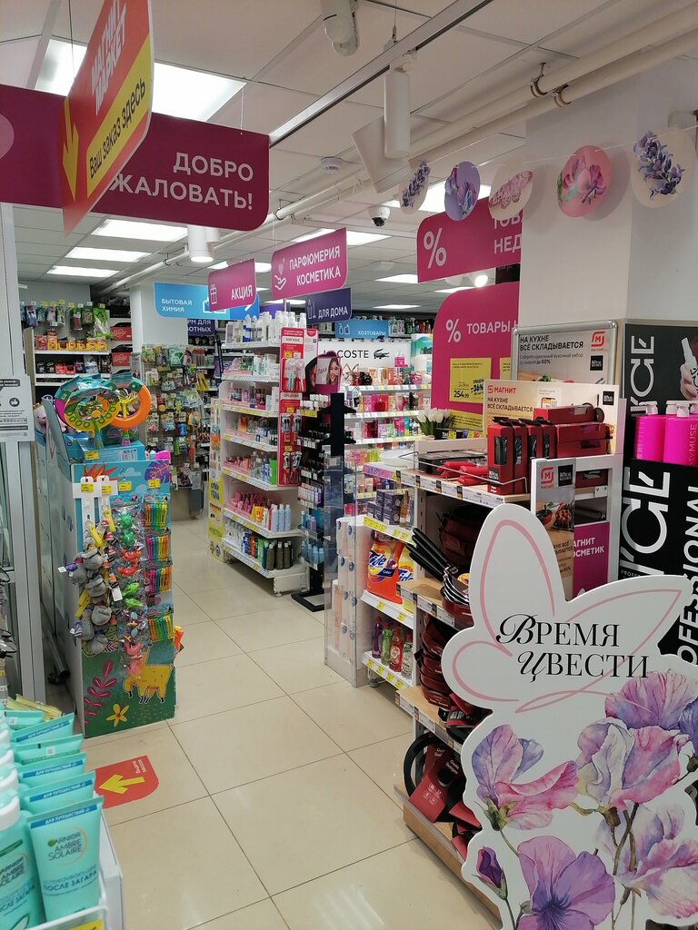очень классный магазин. большой ассортимент, все чисто и аккуратно. приветливый и дружелюбный персонал. всегда подскажут и помогут. постоянно проходят различные акции, что не может не радовать. как не зайдешь, всегда улавливаешь скидки на разные категории товаров. в этом магазине царит дружелюбие и гармония. хочется возвращаться сюда снова и снова. лучший магнит косметик в городе!!!!