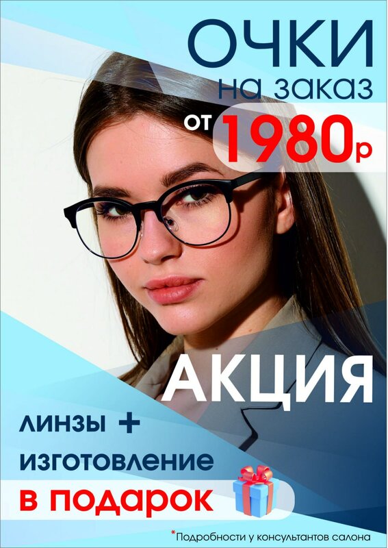 Очки по вашему рецепту от 1980 руб. Очки получаются по цене оправы. Самая дешёвая оправа 1980 руб. В подарок идут линзы без покрытий, есть ограничения по диоптриям (от -6,0 до +6.0, без астигматики), нужно уточнять у консультантов в салонах.