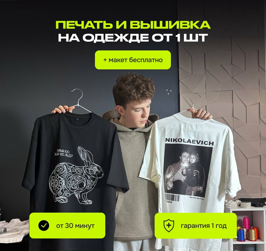 Искал услугу печати на футболке и наткнулся на объявление на Авито. Привлекла внимание приятная цена и положительные отзывы, решил написать ! Ребята молодцы! Быстро откликнулись на мой запрос, дали полную консультацию и точно ориентировали по стоимости услуги. Общение было исключительно приятным и вежливым. Когда я пришла лично, Девушка потратила около часа на доработку дизайна моей футболки, проявив терпение и профессионализм. Качество печати превосходное, сроки соблюдены. Очень довольна результатом, рекомендую однозначно ! получилось лучше чем я ожидала