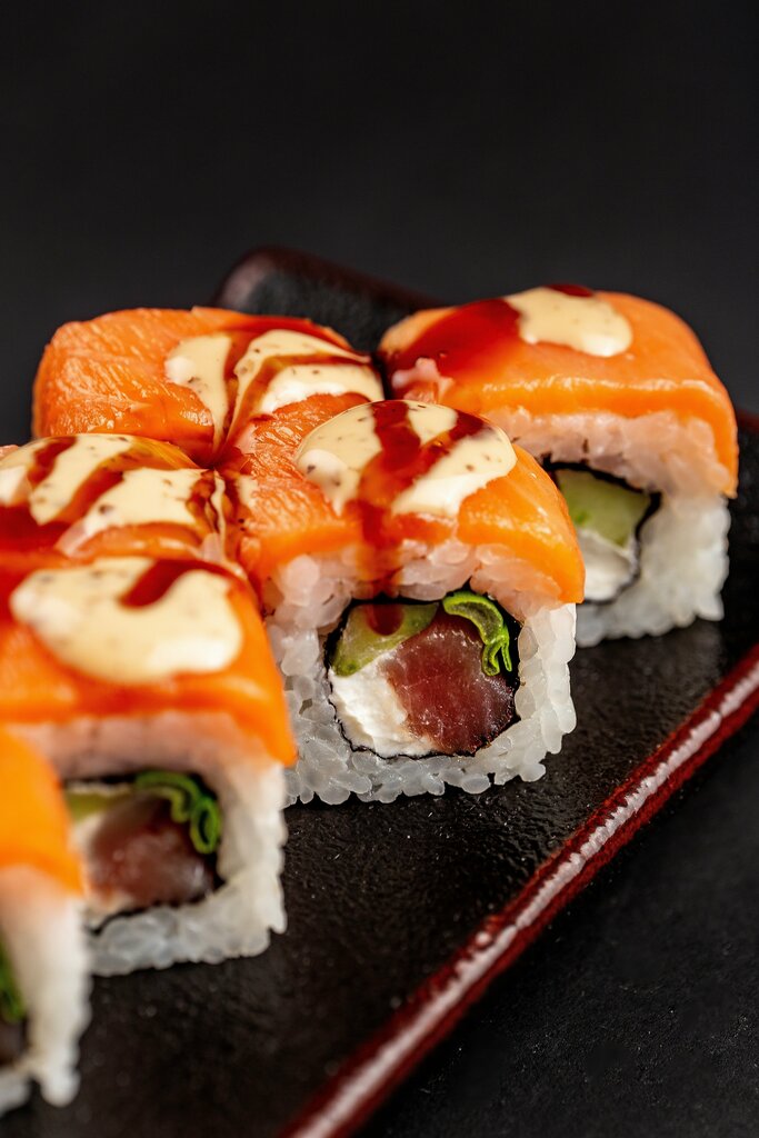 Ролл Мисима, ролл Запеченный с мидиями, ролл Ганрю, ролл Кенши