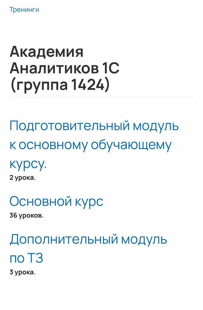 Курс понравился 👍🏻 До обучения работал в тех поддержке, пришел учиться для повышения квалификации. Подробная теоретическая база и много практики. На собеседовании сказали, что очень редко кто может назвать объекты метаданных или чем отличается регистр сведений от регистра накоплений, а у нас это сразу в первых лекциях было. На прошлом месте работы мне как раз теоретических знаний не хватало. После обучения через неделю взяли на работу аналитиком, всем рекомендую