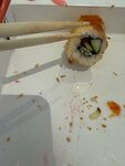 Зашла перед кинотеатром перекусить. Заказала 10 суши с угрем и тунцом, зачем то продавец положила в 2 разных контейнера, видимо отмывают на контейнерах деньги 🙈суши были средние. Но вот роллы, которые лежали на витрине, лучше бы я их не видела) сильно заветренные Филадельфия с лососем явно говорили о несвежести представленной продукции. С связи с чем могу сделать вывод , что за качеством еды в этом отделении фуд-корта никто не следит. При мне несколько представленных обветренных ролов положили в следующий заказ. К посещению место не рекомендую.