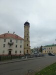 From here it is convenient to start a walk through the center of Grodno, as there is a large parking lot next to the tower and the synagogue. On the building of the tower, everyone usually looks for "Giaconda", a local girl who was painted by the artist, in a uniform very similar to her :)