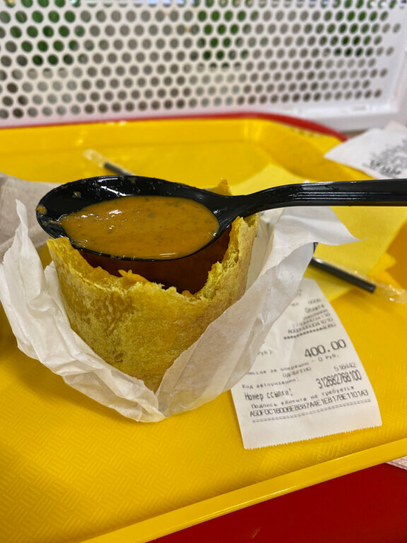 Впервые попробовала суп со съедобным стаканчиком. Очень понравился. Сначала думала, что не наемся, но стаканчик оказался в самое сердечко 💕. Оригинальная подача, вкусный сырный супчик, а особенно съедобный стаканчик 😋. Всем рекомендую. Приду и за другими вкусами. Ждите 👐