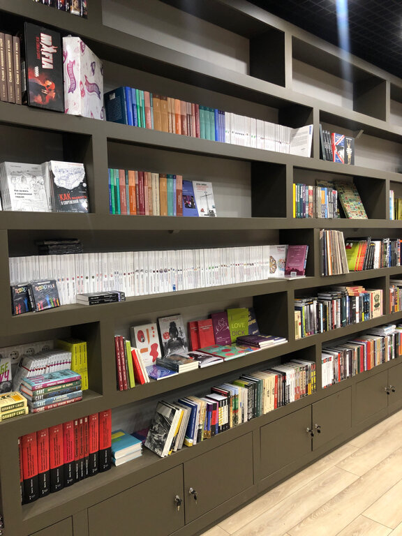 Витрина завлекла детскими книжками, не смогла не зайти, очень классный выбор детских книг и не только, зайду еще раз дабы повнимательнее покопошиться, ассортимент радует, много иностранной литературы 👌единственное не очень понятен порядок расстановки книг, тем не менее все очень красиво и радует глаз)