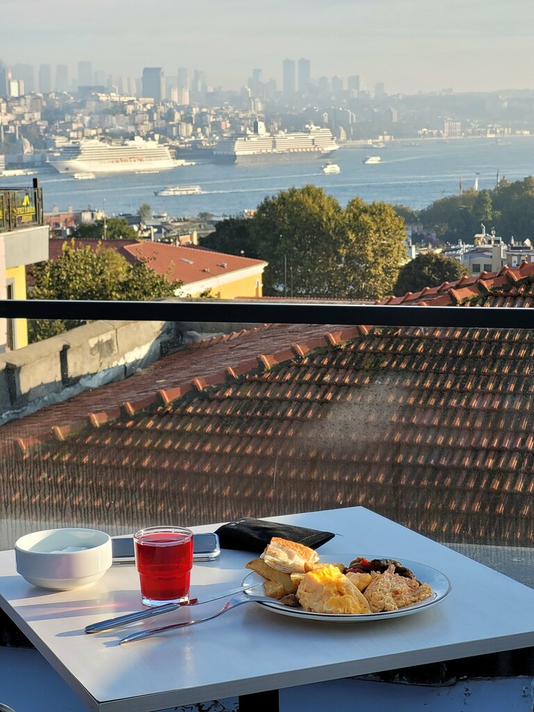 A small and cozy hotel in a super location. Close to attractions and tram stops. There is a market nearby where you can buy water in the room for a teapot. (17 lira liter), but there is welcome water in the room, as well as in all of Turkey - fashionable cups. There is a small buffet for breakfast, but you can find something to eat :) You won't stay hungry. (photos from the breakfasts were attached.) They didn't find any bathrobes in the room, but they didn't ask about them. The rooms are really small, but they are quite free for rest/sleep. Nice guys at the reception, and they know Russian. Thanks! And if possible, we will come back again!)