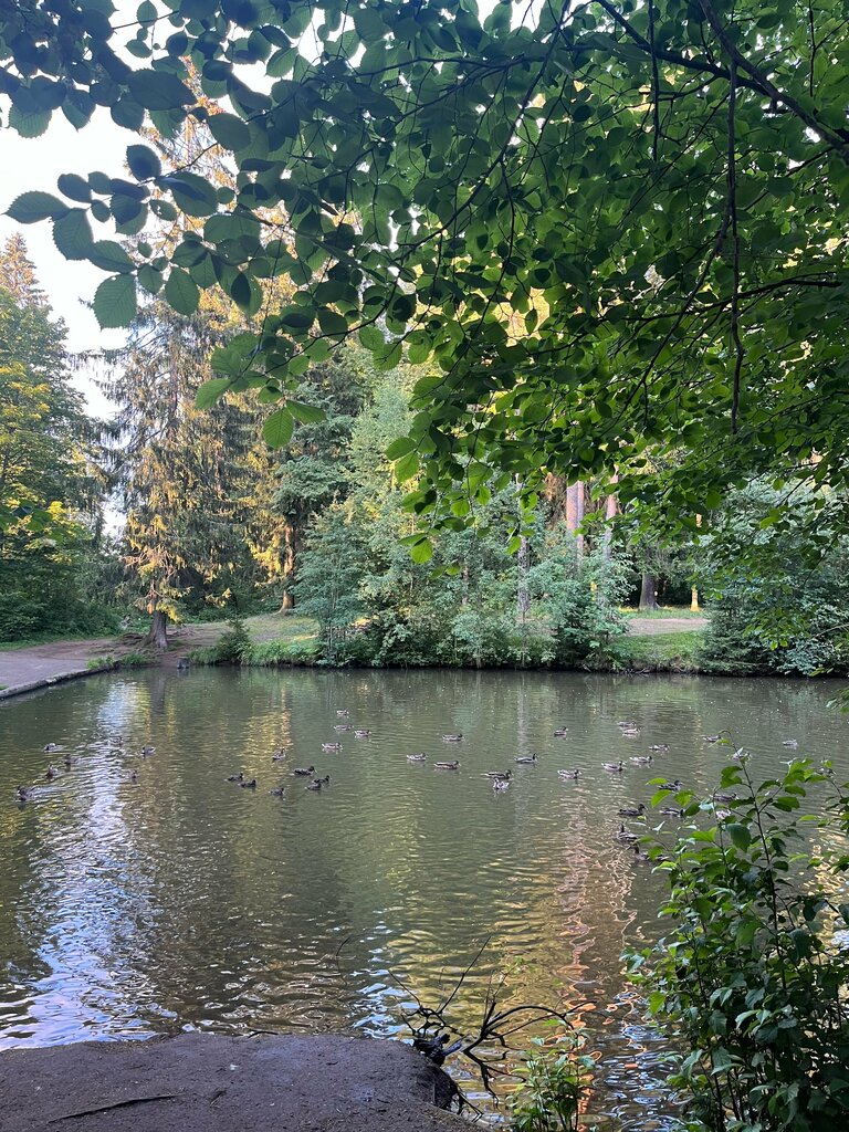 Парк очень дикий в плане благоустройства,администрация им не занимается,только добровольцы,любимое место прогулок,много уток,люди стараются сами за собой убрать,нет ни урн ни лавочек,зато в пруду можно искупать собак,мостик почти развалился с коляской тяжело проходить.