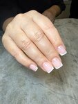 Маникюр с покрытием гель лак + укрепление и дизайн френч. Френч маникюр — классический вариант с аккуратной белой линией на кончиках ногтей, который всегда выглядит стильно и подходит для любого случая.