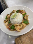 Жареный рис с креветками и овощами
