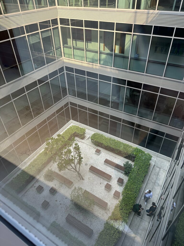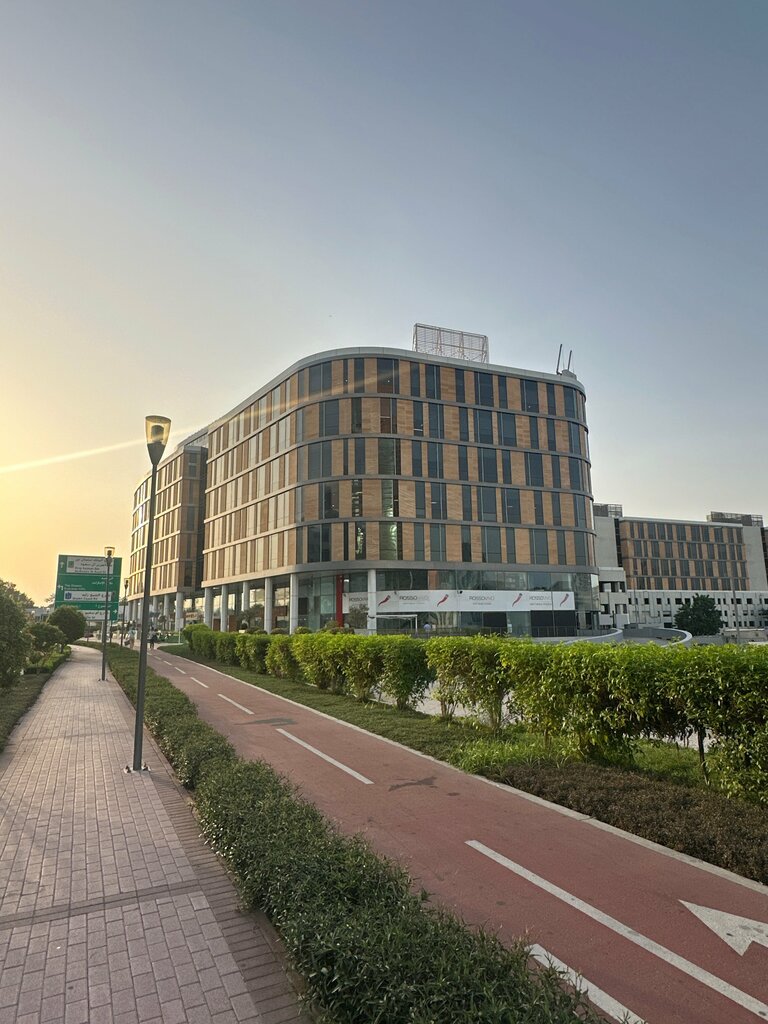 A cool office center in Dubai's Silicon Valley. Inside there is a cozy courtyard, stylish offices with good furniture. The atmosphere is strict and at the same time cozy.
