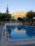 Good afternoon, dear readers of this review! We stayed at the hotel from 01.10 to 10.10.2025, the most gorgeous time for a comfortable stay without the infernal heat and crowds of tourists) Let's start in order: we arrived at the hotel at 9 o'clock in the morning, check-in is the same as everywhere else from 2 p.m. There was a lot of traffic on the way, because of this, of course, the travel time increased a lot, because in the morning the whole of Antalya goes about its business) but in reality, I think that without traffic jams it would be possible to get to the place in a maximum of an hour with arrivals and unloading of tourists to neighboring hotels. Ours is located at the entrance to Kemer and it is very convenient) At the reception, we were offered to leave our things and start immediately on vacation) because the room was not ready by that time, and it was absolutely inconvenient to wait for a room for about 5 hours. We had a great time for breakfast and after that, for the approbation of morning beer from the road) and so... THE TERRITORY: It is small, but very well maintained, with an incredible view of the mountains from the pool! Everything is green, banana palms, flowers, tangerines... Peacocks are walking, cats come exclusively for dinner)) they do not climb on the sun beds and tables in the outdoor bar. bar: All drinks are of good quality: beer, Vodka, wine (pink, red, white), crayfish, whiskey, gin, rum, and soda, of course, without it. The bar has a refrigerator with bottled water, there is a refrigerator with beer, but it is paid and did not particularly arouse the interest of vacationers, a coffee machine. There is also a snack bar on site in between the main work of the restaurant. French fries, nuggets, burgers are all +- standard, there is pizza and pide, always fresh and warm. THE CANTEEN: The food is monotonous as everywhere else, but I didn't come across a salad from yesterday's pasta)) There is no direct hyper-selection, but the quality of what is served has always been excellent and the chef regularly made his rounds and communicated with the guests. Fish, meat, turkey, chicken have always been everything. We got on a Turkish night, there were so many local dishes and so diverse that we could barely get our feet off the table)) fruits were always tangerines, watermelon, apples, melon, plum, strawberries)) On Monday there was a fish day and for dinner we enjoyed eating squid, shrimp, fish was generally in several variations, mussels and rolls. SWIMMING POOL: a relaxing place, non-alien music is playing quietly against the background, creating an exclusively background sound, you can calmly lie down to chat, or calmly read a book. The pool was clean, small, and there was plenty of room for everyone. CONTINGENT: Russians, Czechs, Poles, British, Germans Usually, when the British come across trouble in the hotel, endless drunken screams in attempts to out-shout each other, diving into the pool and a lot of noise, but not here. The main part, and this is probably 85%, is the age of 55+, or even all 60+. So if you're considering this place for unrestrained parties, it's definitely not here, it's more about getting absolutely all the convolutions in your head straightened out from the silence. In the evenings, when everyone gathers at the bar, there aren't even queues in an attempt to speed up the emptying of the bar)) almost every evening there were discos and live music - all in the best traditions of retirement holidays)) NOW ABOUT THE CONS, AND THIS IS DEFINITELY A BEACH.: you won't take beer with you on the sunbed there, because it's just not there, and the drinks that the local bar offers in a meager assortment should only be drunk on a bench, sitting next to a hopot peasant, the boss of apparently all bosses with a cigarette butt in his mouth, and he just won't let you go out on the sand with a glass of water! Screams and screams immediately follow from the smoky head. The beach itself is unkempt, cigarette butts are everywhere, empty bottles are overflowing in vases under the tables, the mattresses on the sun beds are torn and everything is just dragged along the beach, the only thing that, thank the gods, remains unchanged is the sea and the mountains, but this individual has nothing to do with this)) he will be silent only if you buy beer on the beach for fabulous money. The kkk was observed by vacationers from our hotel who came with plastic water bottles filled with wine)) I think that the management of the hotel should still pay a little attention to the beach, people go to relax, and not monitor what can be done and what can not be done to the screams of a stranger who, in fact, does not really know why he is there, but in reality thinks that he is the owner of the whole of Kemer. In general, to sum up, we were satisfied with the hotel, the quality of the food, and the service, and decided to just ignore the little things like the beach) I think there's a solid four here, if there was more territory it would be great, but it's as it is)