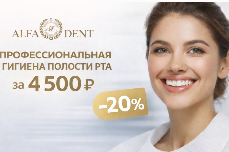 Комплексная гигиена зубов за 4500 ₽ в стоматологии «Альфа Дент» — скидка 20% до конца февраля Стоматология «Альфа Дент» приглашает на профе...