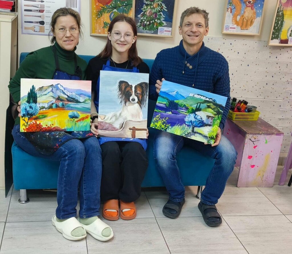 Моя дочка Учится в первом классе и после того как в сентябре пошла в школу, захотела научится рисовать как настоящий художник. По совету однокласницы мы выбрали школу рисования Family. Потом было первое пробное занятие, после которого решили - будем точно сюда ходить. Во первых удобное расписание, во вторых студия недалеко от дома, приятные цены на абонимент и мастер класс в подарок!!! Самое главное, что тут уютно, творческая атмосфера, как то по семейному тепло. Дети рисуют то, что выбирают сами, а не все одно и тоже. Ах да, не надо покупать краски, кисти и т.д, вам всё любезно предоставят на занятиях.