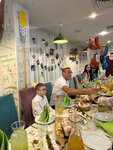 Шикарное место. Можно как и одному зайти перекусить, попить кофе (хотя заведение совсем не про это), так и с семьёй и детьми. Сегодня отмечаем тут сразу 2 дня рождения, мой и дочки. Есть отдельное детское меню для самых маленьких, хотя и обычном хватает позиций, которые с радостью стрескают детишки. Для детей есть отдельная игровая комната с аниматорами, совершенно бесплатная, я в шоке)) Еда на высшем уровне, порции большие, можно нормально наесться! Цезарь с креветками, салат с баклажанами шикарны, но когда принесли огромную тарелку феттучини с креветками, я понял, что стану завсегдатым этого места)) Волшебный кофе, множество вариаций на любой вкус и цвет, столько же видов чая. Брали с чёрной смородиной - великолепно! Ну и для любителей сладенького полно всяких вкусняшек на выбор))) Великолепная отмосфера, удобные диванчики и кресла, тихая ненавязчивая музыка, приветливые и улыбчивые официанты, а главное всегда готовые подсказать и посоветовать. В общем, я в восторге от этого заведения!!! Пока писал отзыв, к нам подошли сотрудники с бенгальскими огнями и вынесли два кусочка торта и поздравили с днём рождения))) дочка в восторге!! Спасибо большое за такие тёплые эмоции))