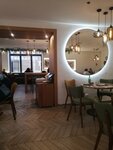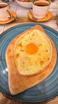 Узнали об этом месте из приложения со скидками, почитали отзывы,было неоднозначно, но решили зайти. -интерьер приятный,в отзывах есть упоминание столовки, но ничего подобного не увидели. -цены демократичные,можно бюджетно перекусить -был очень вежливый официант -заказали хачапури лодочку,хинкали с сулгуни,хинкали с сыром и вяленными томатами,салат с баклажанами(тк видели негативный отзыв про их размер), десерт мама рада и чай с чабрецом. •лодочка была очень горячей,вкусной,тесто приятное, нет выраженного вкуса дрожжей как часто бывает •хинкали с сулгуни понравились больше чем с сыром и томатами, в них много специи, но тоже ничего. Тесто приятное, тонкое не разваренное,есть немного бульончика(учитывая что они с сыром) •салат с баклажанами вкусный,заправки достаточно, сами баклажаны порезаны стандартно для такого способа приготовления,они не были сырыми, если их резать меньше-будет каша, поэтому размер идеальный,как и приготовление. •чай вкусный,приятный аромат чабреца •десерт мама рада это очень нежное и вкусное блюдо в виде хинкалинки, сверху напылении на основе белого шоколада,отчетливо чувствуется,приятный легкий мусс и начинка, мы предположили что кусочки были груши или айвы,но забыли уточнить у официанта,поэтому осталось тайной) Возможно нам повезло с поварами и все было очень вкусно, но однозначно вернемся еще❤️(хинкали сфоткать не успели🙈)