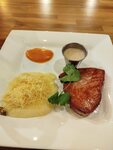Заказ стейк тунца с пюре , капучино и чизкейк клубничный . Ожидание 13 минут. Хорошо. Вкус стейка: пережарено, очень солёно. Если не знать ,что это тунец - не догадаешься. Пюре без вкуса картофеля совсем. Без соли совсем. Сверху посыпано пюре натертым сыром с ярким ароматом и горчинкой (типа масдама). Соусы вкусные, но это не спасает ситуацию. Вкус жёлтого что-то вроде икры баклажанной. Чизкейк вкусный,но никогда не видела такую маленькую порцию. Капучино вкусный. Но чашек больше 200 мл нет. Само место приятное. Чисто. К стойке поваров не подходила. Официант вежливый. Несколько лет ходила мимо , и правильно делала. Увы. Разочарование.