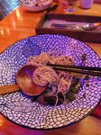 Место бесспорно антуражное, интерьер хочется сидеть и разглядывать, однако с едой нам не повезло. Заказали рамен с курицей, лапша показалась безвкусной, и рамен том ям, после которого пришлось посидеть в обнимку с унитазом. Просим ребят тщательнее следить за качеством и состоянием морепродуктов, а гостей ресторана с осторожностью заказывать рыбные блюда