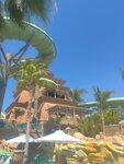 Nice water park. There are many slides for children, of different formats. Adults will also find something to do. Nice white sand beach. Special disposable slippers are provided at the entrance, you can choose the size. On the downside, very expensive fast food.