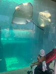 An amazing place for children and adults. Located at the Atlantis Hotel on the Palm Jumeirah. The tickets were booked through a company in Dubai. They paid from our card by transfer to a Russian card. The tickets were sent by e-mail. The ticket was bought with an aquarium. At the entrance, they give out aquasocks and a water bottle. Lockers are paid, 50 aed. You can take your phone with you, but in an airtight bag, which are for shooting in water. They took an action camera with them, attached it to their arm.