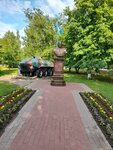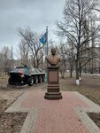 Герой Советского Союза - Маргелов Василий Филиппович, 1908 - 1990. Генерал Армии. Командующий Воздушно-десантными войсками СССР ( 1954 - 1959 , 1961 1979 гг. ) 12 мая 1945 года без единого выстрела заставил капитулировать 32 000 солдат и офицеров немецкой армии. Враги были поражены храбростью русского генерала! Установлен в парке, можно прогуляться по парку, есть скамейки, не далеко остановка, есть парковка.