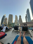 She lived on the 42nd floor. View of the bay. I took a taxi to La Mer beach for 25 dirhams. The room is comfortable, large, with snow-white linens, a kitchenette. Meals are breakfast and lunch, delicious, very good choice. There is a large selection of cafes near the hotel. Dinner is an average of 50 dirhams per person).The hotel itself is located, so to speak, in the middle of Dubai, and due to the metro, which is a step away from the hotel, you can visit all the sights. The location of the hotel, as an urban one, is very convenient. (I've lived in almost 10 hotels in different areas of Dubai, so this is the most successful one). The hotel has a pretty decent pool on the 3rd floor. At a good price)), I would return to this hotel.