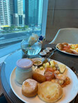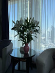 The most worthy hotel. An atmosphere of respectability, benevolence and utmost customer orientation. The highest level of service and quality. It's hard to think of a better location: proximity to iconic landmarks and the subway (although taxis were still chosen for speed and convenience of movement), "respectable neighbors" - luxury skyscrapers of hotels, shopping and financial centers. When booking, I asked for a room on a high floor with a good view. At the time of check-in, only the smoking room on the 34th floor met these criteria (out of 65, the hotel is one of the tallest in the world). And although we are non-smoking, I agreed to this option. The room turned out to be huge: from one window there is a view of the old city and the bay, from the other, to paraphrase a nursery rhyme: "And from our window the Burj Khalifa tower is visible." Well, it's beautiful! In the kitchen there is a refrigerator, a microwave, a kettle, a couple of glasses with spoons, 4 glasses and ... everything. Refillable supply of bottled water and tea/coffee bags. Slippers and bathrobes are brought on request (originally they were in a single copy). Large wardrobe, iron with ironing board, hairdryer, safe, Koran with prayer mat. There is a green arrow on the ceiling in the direction of Mecca. This is the first time I have met such attention to guests who profess Islam. Good hygiene products: gel, shampoo, conditioner, body lotion, liquid soap. Cotton swabs and sponges, a shower cap, are all available (a toothbrush and shaving accessories will be provided on request). The breakfasts on the 3rd floor (there was no menu at the O'lio restaurant on the 1st floor) were decent, without frills, but good. Traditional morning set: muesli, porridge, sliced meat and cheese, scrambled eggs, boiled eggs, curry, pastries, fruit, juice, coffee. You can order an omelet. On the 4th floor there is a swimming pool with several sun beds, umbrellas, a pool bar and a good view. We did not have time to use the services of the spa center. There are Russian-speaking girls at the reception. On the day of departure, I found Maria, who kindly extended the stay for 2 hours, which was fine with us. The concierge takes suitcases for storage in the luggage room, and you can change for the trip either in the large bathroom near the Rose Cafe or in the spa area on the 4th floor. Overall, our stay at the hotel was comfortable, calm and of high quality. If possible, I will definitely return here and with great pleasure (although I will choose a non-smoking room anyway).