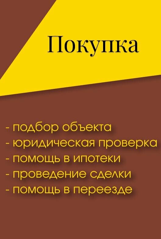 Оказываем услуги при покупке квартиры, загородного дома или земельного участка, а также коммерческой недвижимости. Услуги включают в себя поиск и проверку объекта, сбор необходимых документов, проведения сделки под ключ.