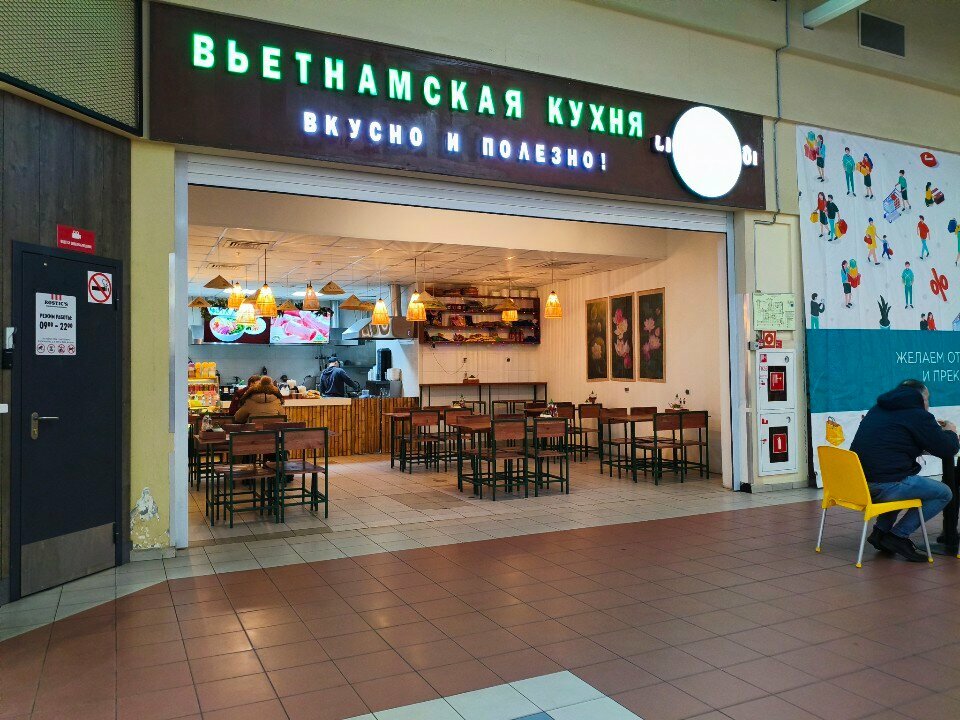 Здесь очень вкусный Том ям по адекватной цене, большая порция, постоянно берем этот суп в разных заведениях по России, но всегда за самым вкусным возвращаемся сюда! Из недостатков, летом бывают мухи на фуд-корте ТЦ, но так как заведение никак не закрыто стеной, то и там соседствуют
