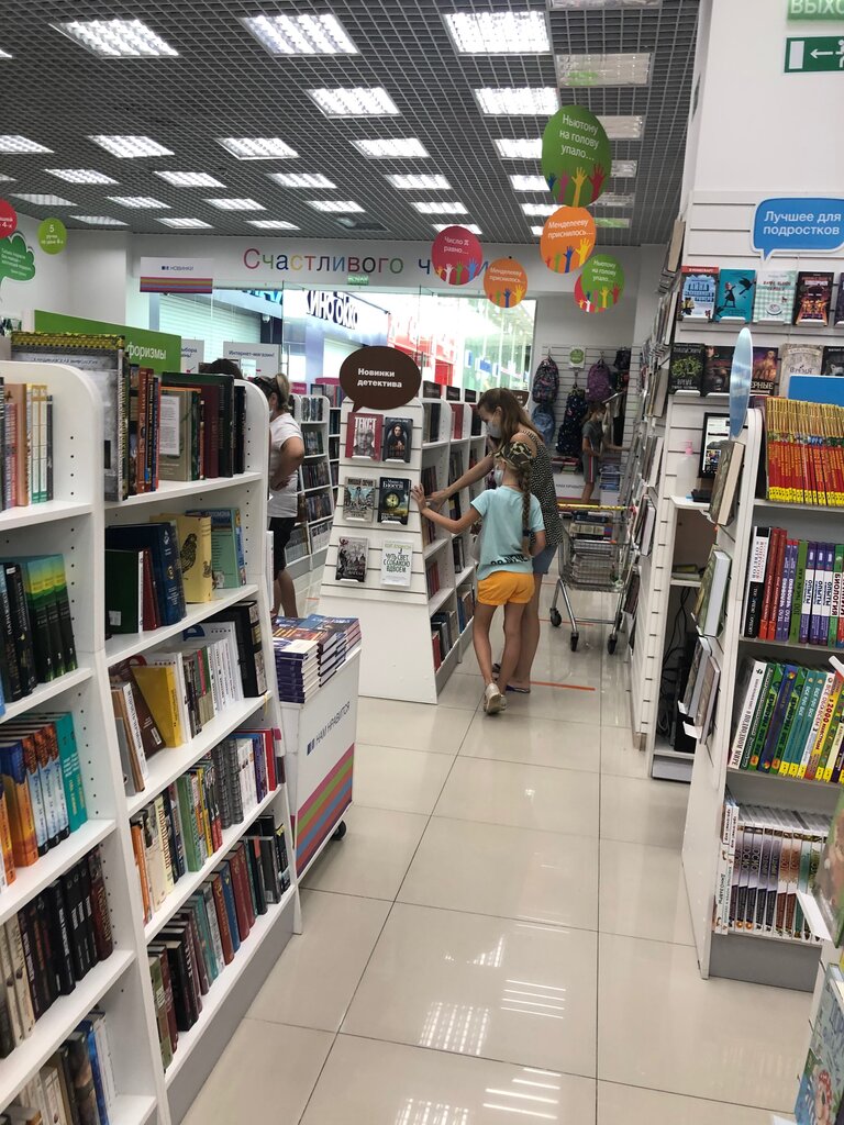 Отличный ассортимент книг, дети всегда просят зайти за книгами "перед сном"и мы часто делаем здесь покупки для всей семьи. Но вчера всё впечатление о магазине было испорчено, ребёнок выбрал сначала одну книгу, мы её купили, а потом захотел сразу взять следующую часть, но перепутал и схватил точно такой же экземпляр как и первый. Обнаружили это уже дома, на слелующий день на наше удивление магазин на отрезать отказался поменять книгу, я понимаю, что по закону книги не подлежат возврату или обмену, но должно же быть лояльное отношение к клиентам тем более книгу принесли на следующий день, в плёнке. Магазин рекомендую, но будьте внимательны при покупке.