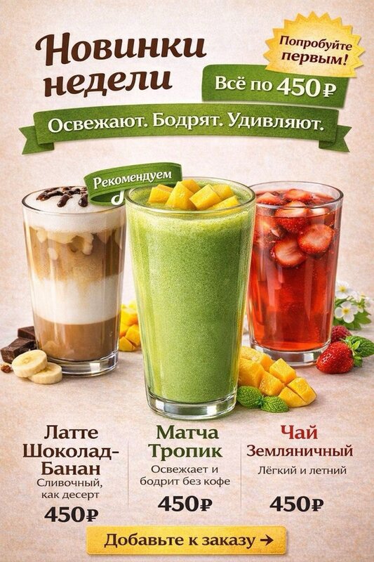 Это не просто кофе. Это твой вызов. Твой момент. Твой ритуал. Твой момент силы. Твоё капучино. Сделай его только своим, выбери миндальное или овсяное молоко, добавь взрывную карамель или классику бурбонской ванили. Закажи его. Сделай глоток. И пусть