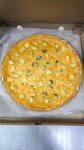 Состав: Тесто слоеное дрожжевое: мука высшего сорта, вода, молоко, яйцо, масло растительное, соль, сахар, дрожжи Начинка: креветки, помидоры, маслины, сыр моцарелла Размер: 38 см Вес: 1,2 кг Срок годности: 3 ч Хранить при температуре: +2 -4