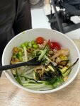 Очень красивое и уюное кафе!😊 Взяла поке «лосось-тунец», осталась сытая и довольная. Все продукты свежие и вкусные. Отличное обслуживание, приготовили быстро!