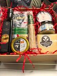 Подарочный набор №2024-8 Состав: Коробка подарочная, оформление, упаковка Хамон 100гр Колбаса с/в Сант-Гален с трюфелем 90гр Сыр Бри 125гр Сыр выдержанный Грандано 180гр Сыр выдержанный Старый Амстердам 180гр Новогодний декор Большой выбор