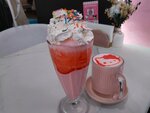 Это кафе — настоящая сказка! Интерьер просто волшебный: розовые стены, рисунки Китти повсюду. Ощущение, что попал в мультфильм. Еда не только очень вкусная, но и красиво оформлена. Заказали два десерта розовый и жёлтый, а также двойной коктейль! Также, за отзыв принесли милую шоколадку.Обслуживание быстрое и вежливое. Обязательно вернемся с подругами. Рекомендую всем, кто хочет почувствовать себя ребенком и устроить милую фотосессию!