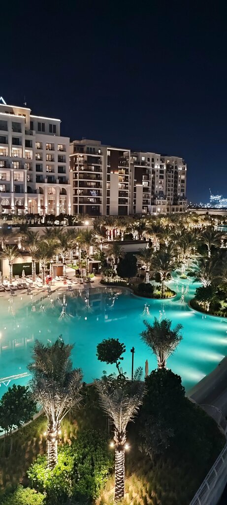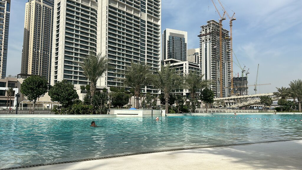 Not a bad neighborhood. Family friendly, calm. There are many cafes, a large grocery store. After crossing the pedestrian bridge over the river, you enter another world with a gorgeous promenade, where there are even more cafes, boats float along the river, and people walk. The embankment offers a beautiful view of the center of Dubai, the Burj Khalifa tower, and the most beautiful skyscrapers.