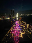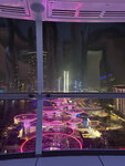 The largest Ferris wheel in the world. The height is 250 meters. At the entrance, the security check is like on an airplane. It's been a long wait. The booths are huge and closed. You feel calm and safe in them. My wife is usually afraid of heights, but she felt safe here. We were in the dark. I took off the star for the glare on the photo. You won't get good photos from the cockpit in the evening. The seat and cabin lights are very bright. As for me, it would be better if there were no lighting in the cabin or it would be possible to turn it off. If you just enjoy the views, then it's okay. The views are really fascinating. Dubai Marina, Palm Jumeirah, Bluewaters are perfectly visible. But you can't take good photos. Perhaps this is not the case during the day.