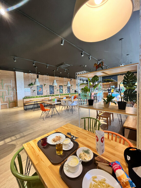Уезжая из Твери заехали в это кафе, столовую. Конечно если не знаешь, то не увидишь ее. Находится на третьем этаже торгового центра с о строительными материалами и мебелью. Интерьер понравился, очень современно. Обслуживание вежливое. Цены небольшие. Порции наоборот большие. Вкус на четверку. Посуду после себя сам убираешь, в принципе сам и приносишь. Официантов нет. Мыть не заставляют :)