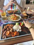 The food is ordinary, the prices are high. There are many places where you can eat better and cheaper. It is clear that the price is explained by the location. But the service could have been better - the waiter did not immediately warn that payment was only possible in cash, so I had to run to the ATM. Then we waited 5-10 minutes for the waiter to come up, pick up the money and bring the change. There aren't many people, and the locals hardly come in. An ordinary cafe is aimed at tourists.