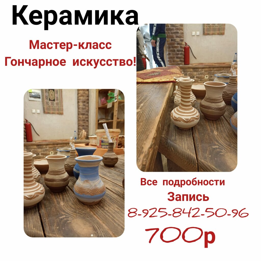 Студия удобно расположена, уютно. Можно с детьми прийти или провести индивидуальный урок. Есть возможность просто полепить из глины, а можно поработать на гончарном круге. Не все мастерские предлагают такую услугу, а это очень интересно попробовать как в фильме Призрак с Патриком Суэйзи и Деми Мур😂 приду с мужем в следующий раз)